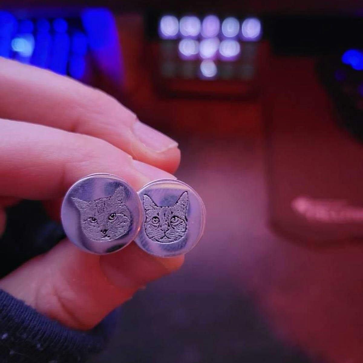 🐾 Gravure personnalisée : portrait de ton animal à partir d’une photo (gravure identique sur les deux boutons de manchette)