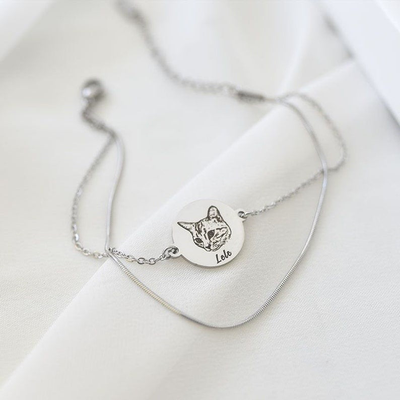 Bracelet personnalisé avec gravure portrait et nom | My Bestpet™ LILY en acier inoxydable