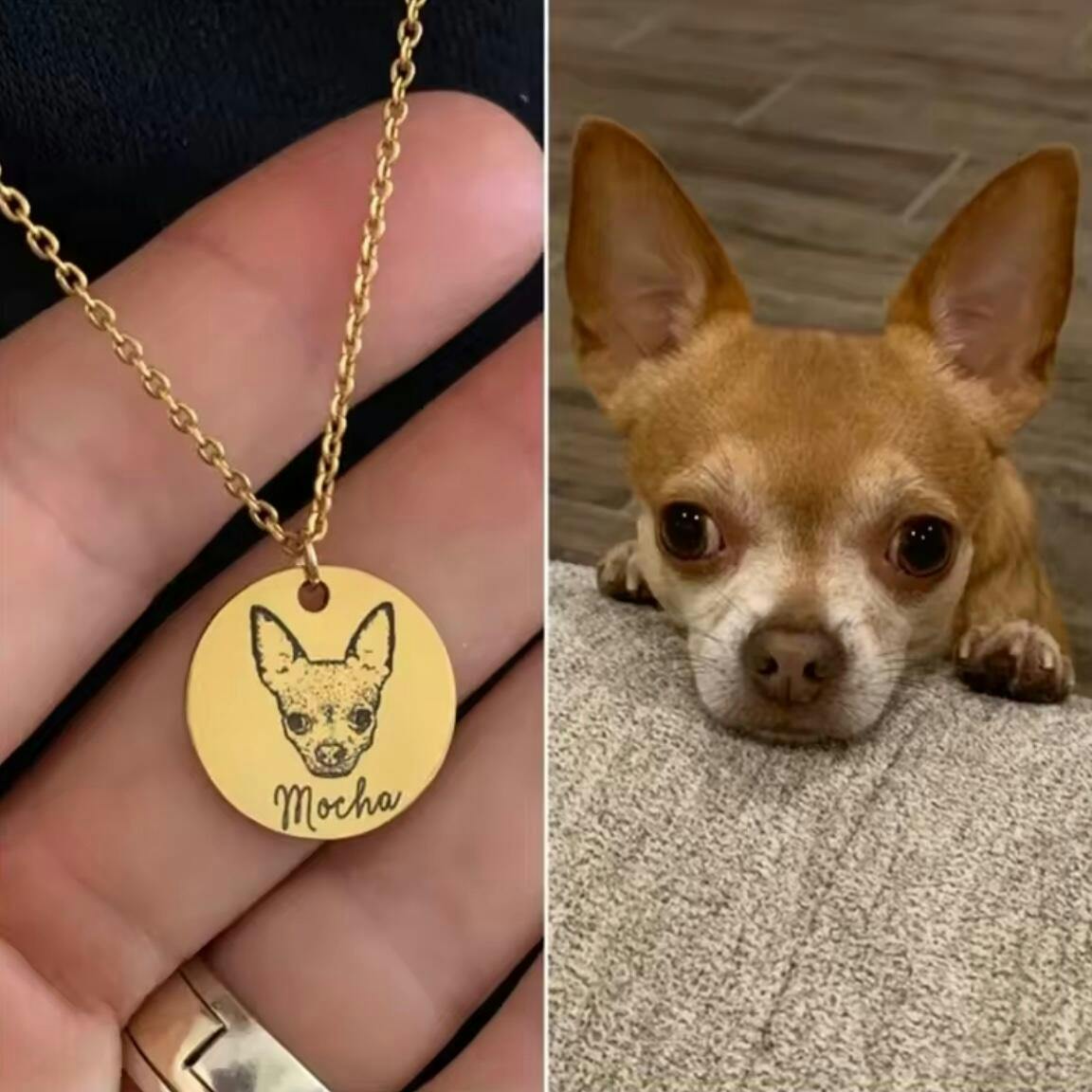 Le collier My Bestpet™ UNINA est une création unique qui capture le portrait de ton animal à partir d’une photo, gravé à la main sur un pendentif en acier inoxydable résistant.